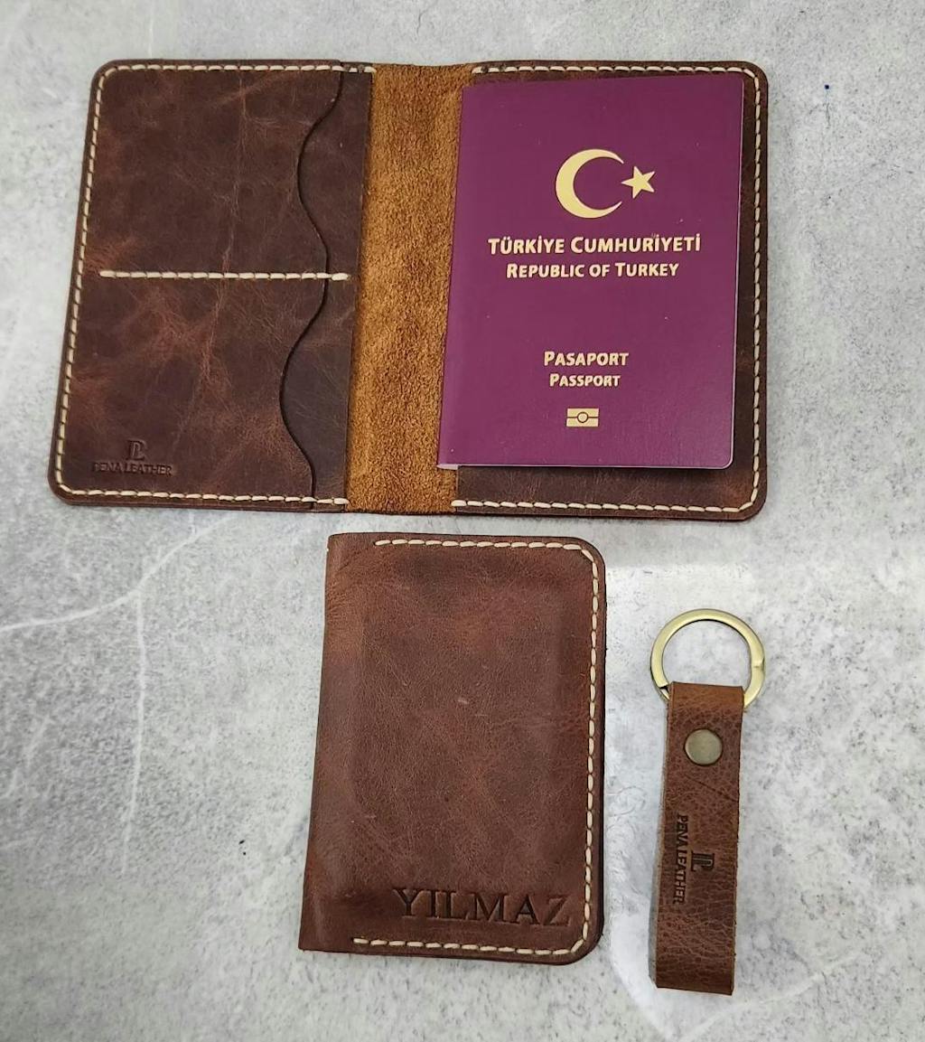 Seyahatlerinizde şıklığı ve düzeni bir arada sunan bu el yapımı deri pasaport kılıfı, fonksiyonel bölmeleriyle tüm belgelerinizi tek yerde toplar.