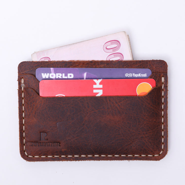 Kompakt ve zarif tasarımıyla öne çıkan bu el yapımı deri kartlık, 4 adet kart bölmesi ve 1 adet nakit para bölmesiyle günlük kullanım için mükemmel bir seçenektir. Nakit bölmesine paralarınızı katlayarak yerleştirebilir, kartlarınızı düzenli ve güvenli bir şekilde taşıyabilirsiniz.